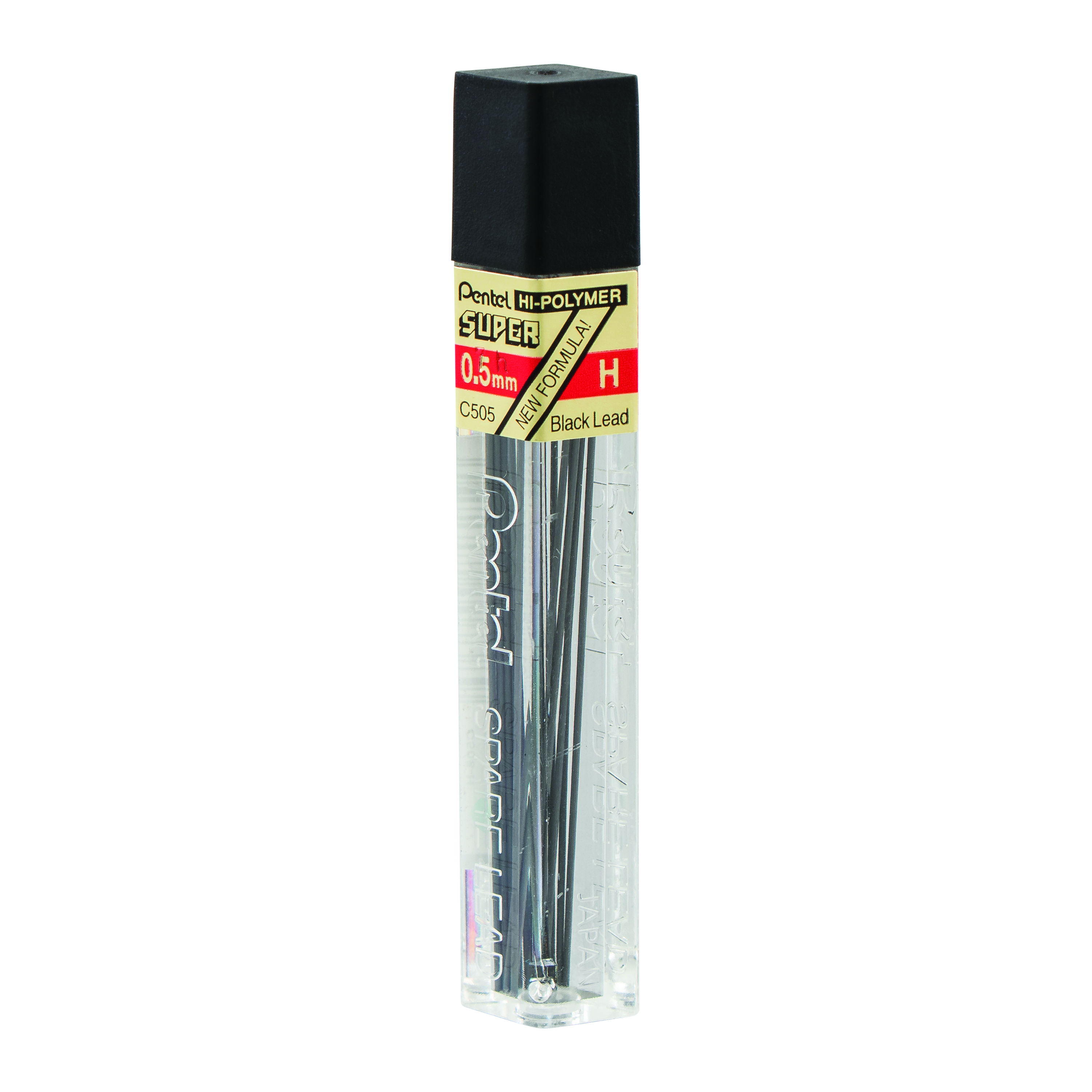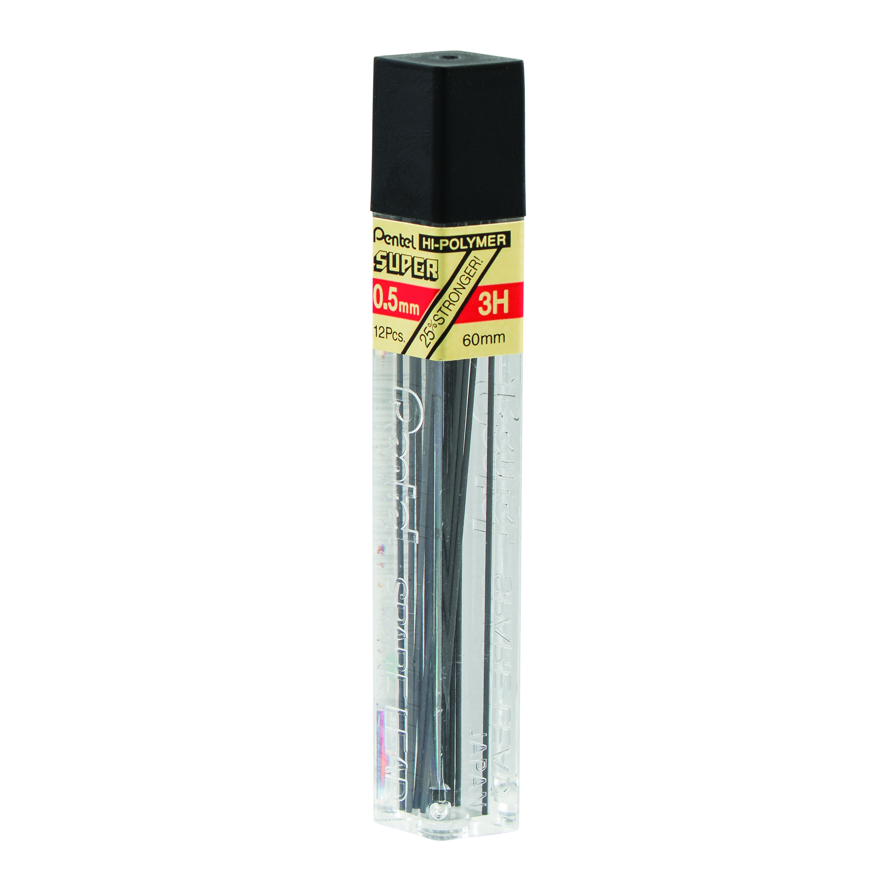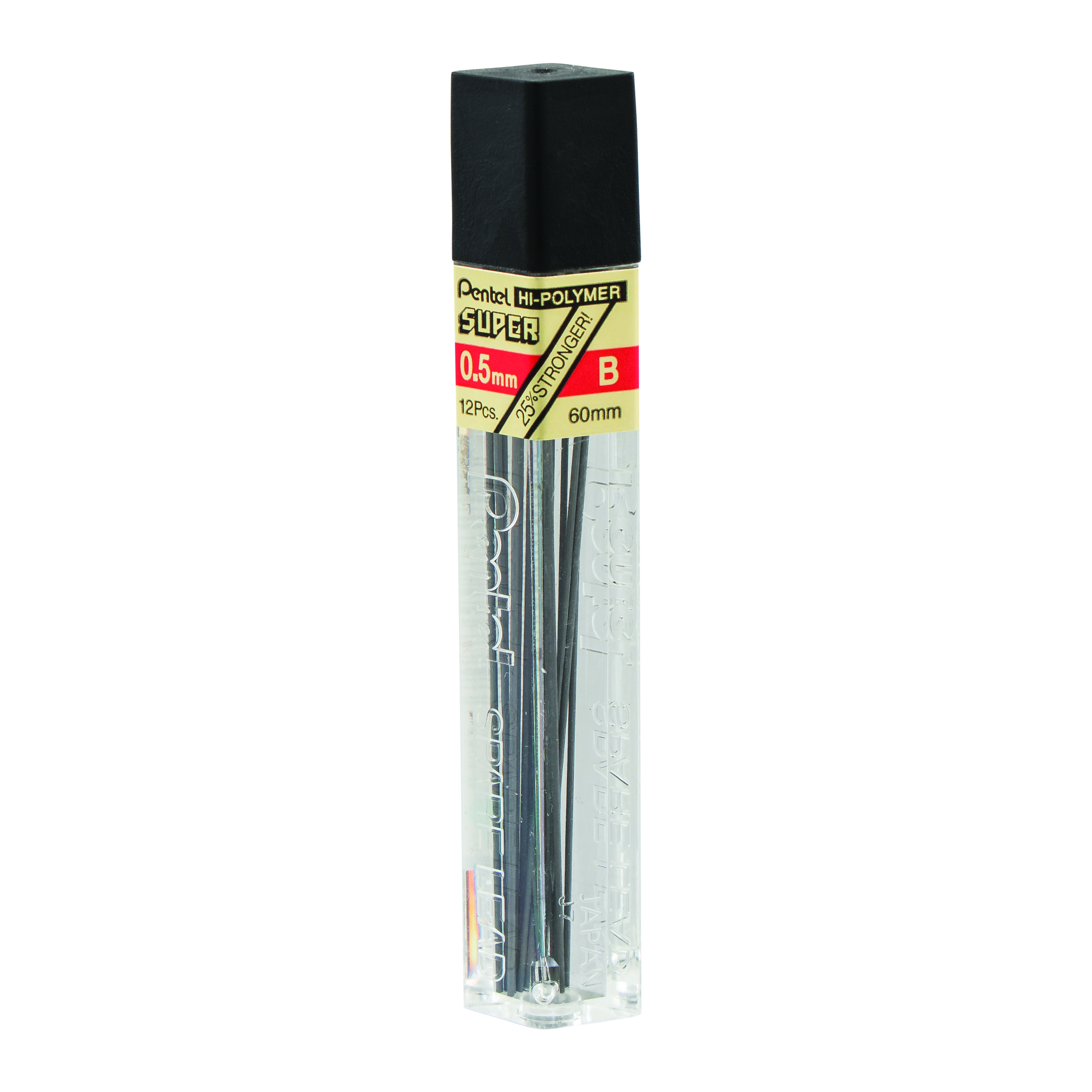 A unique compound of graphite and carbon bound together with a special synthetic resin. Thin but extremely strong lead that produces a smooth, dense black line. 0.5mm. 12 leads per tube. Available in 9 grades: 4B(NEW), 2B, B, HB, F, H, 2H, 3H, 4H and 5H.