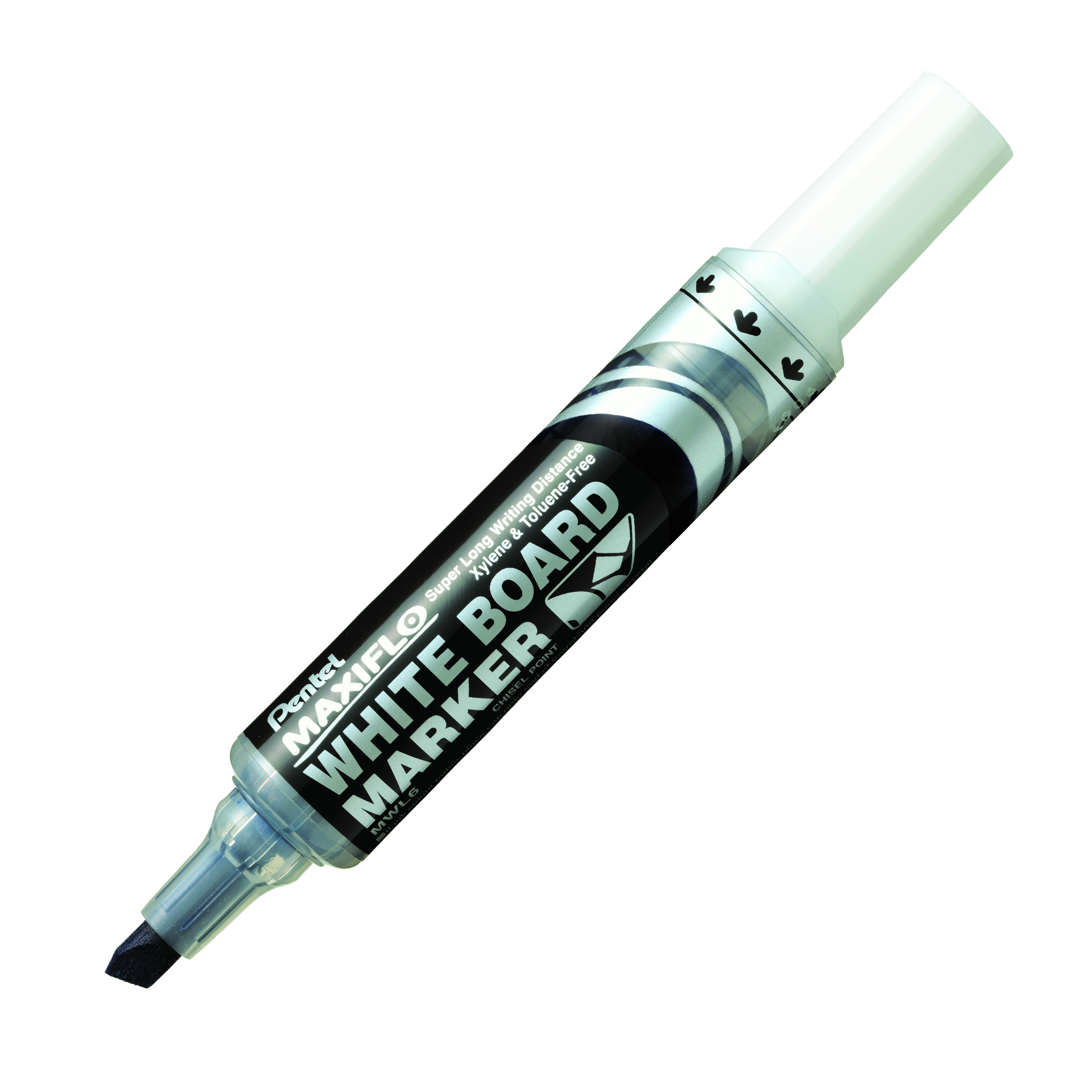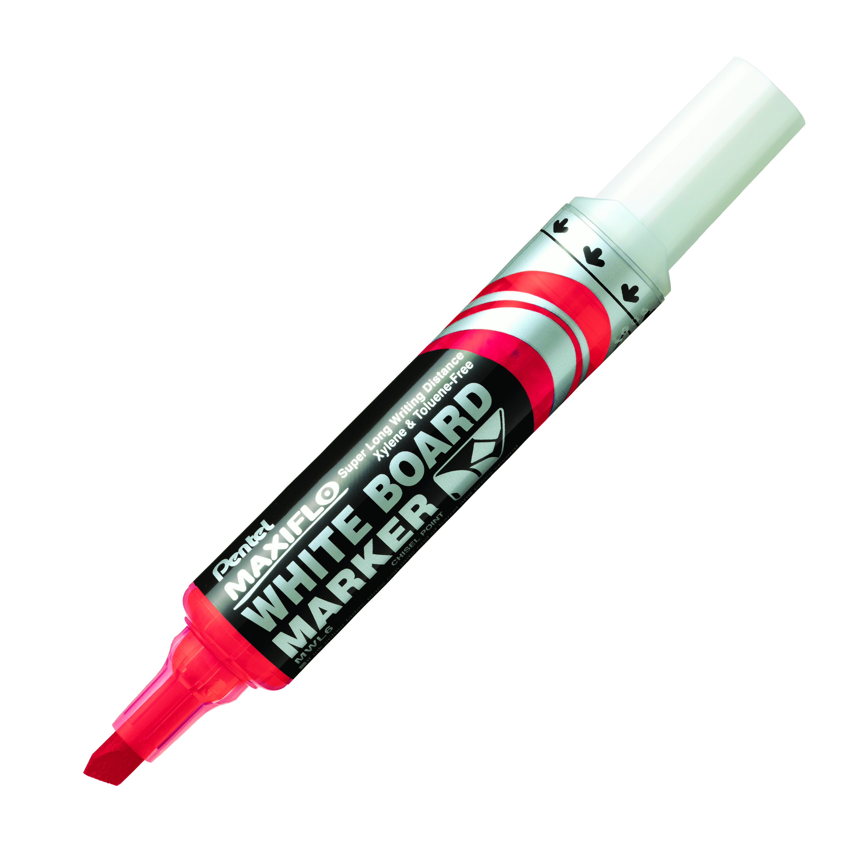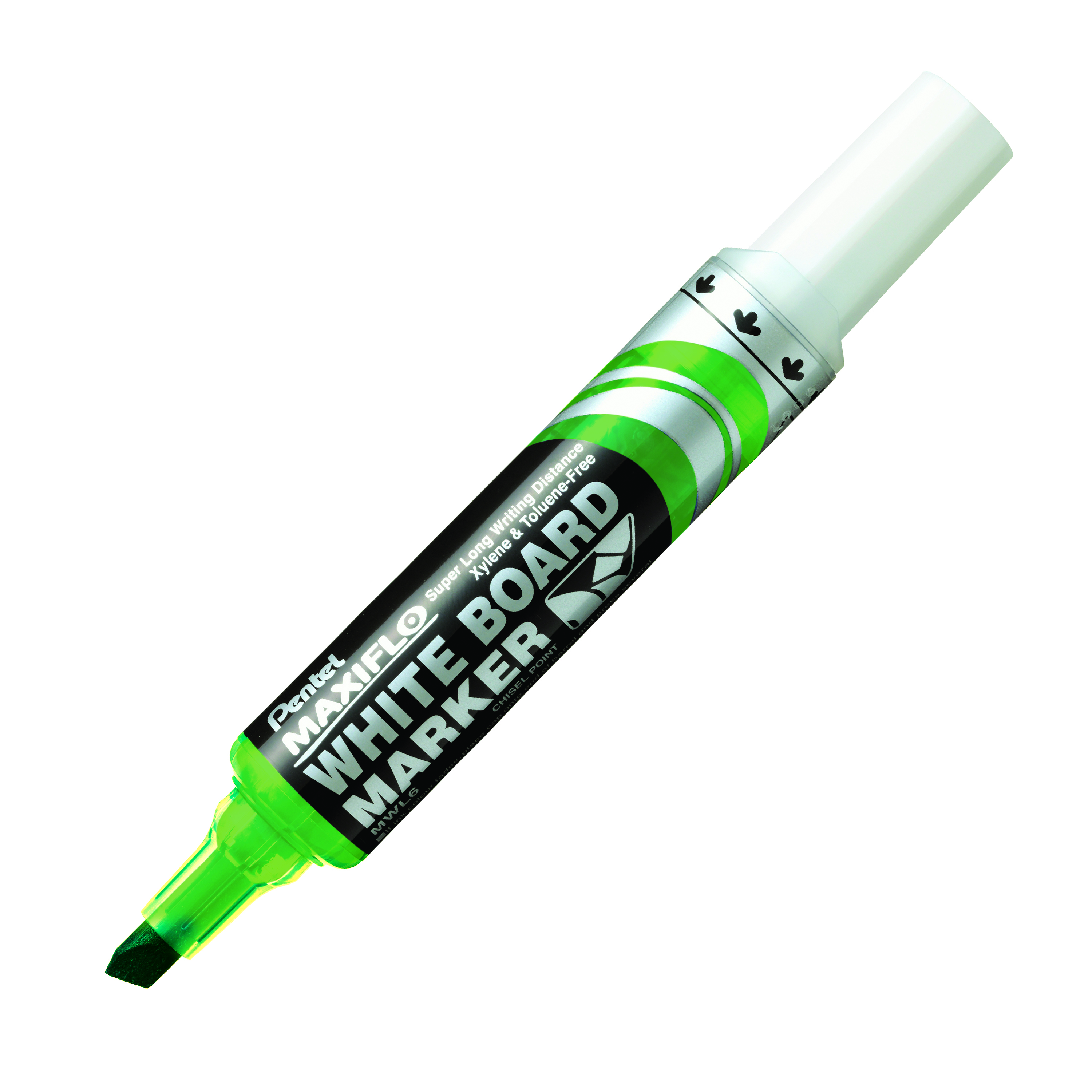 Chisel point. Ink supplied by unique pump action, it writes about three times more than our standard white board marker. 1000m writing distance. Available 4 color set.