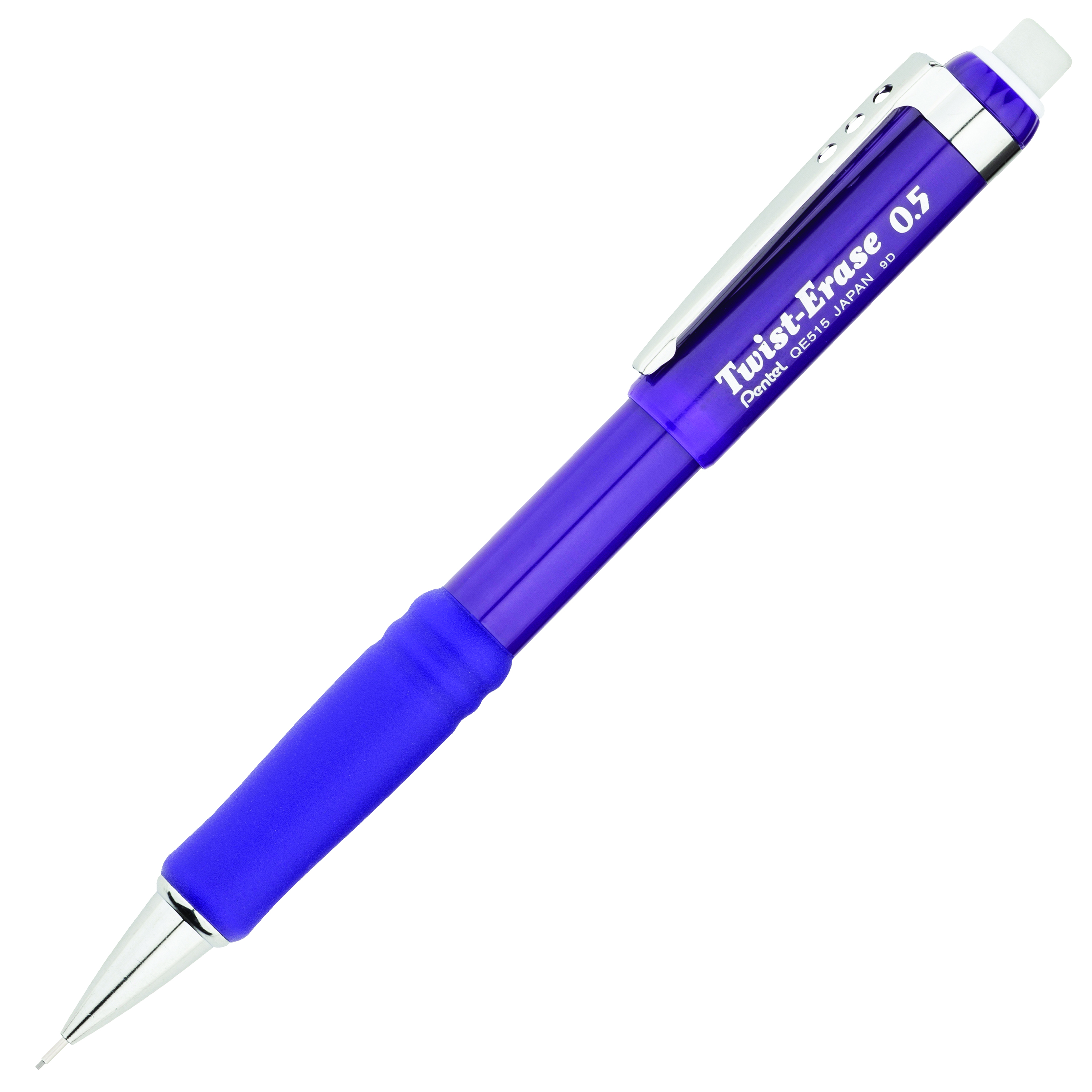 Large retractable eraser and metal clip. Soft rubber grip provides hours of comfortable writing. Uses 0.5mm lead and E10 refill eraser. 3mm fixed sleeve.
